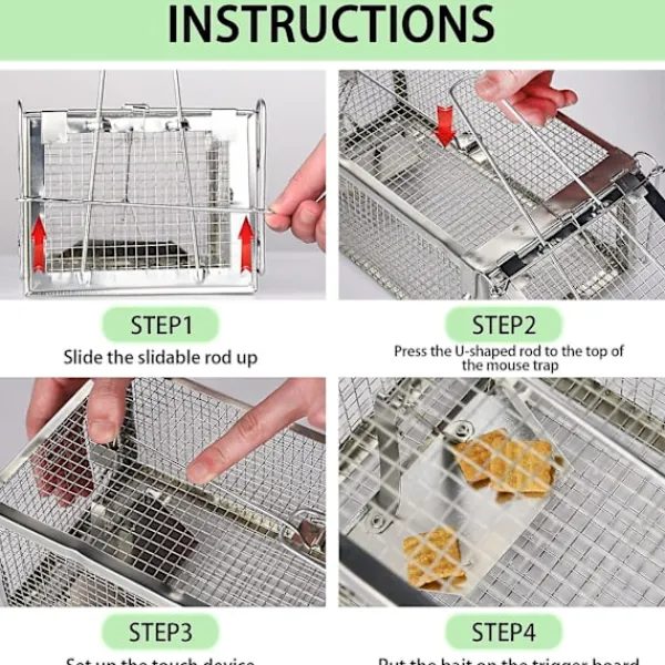 - Humaniserad – Den är hygienisk och säker att använda, innehåller inga kemiska ämnen. Lös dina problem med små gnagare, möss, hamstrar, sorkar och ekorrar på ett humant sätt. Tät nätdesign och handdesign kan förhindra att djur skadar människor.