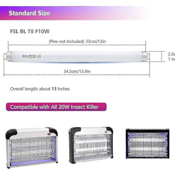 KompatibilitetErsättningslampor Kompatibel med Aspectek, Eazyzap, Fly-Bye, Plus Zap, Flymatic, Xterminate, Vermatic, Etc. Lämplig Kompatibel med de flesta 20W insektsmedel.