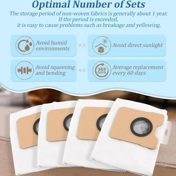 Överlägsen filtrering: Dessa dammpåsar är tillverkade av högkvalitativt non-woven-tyg, vilket säkerställer exceptionell filtreringseffektivitet. De fångar effektivt upp fina dammpartiklar, allergener och djurhår och förhindrar att de återcirkuleras i din hemmiljö. Detta leder till renare luft och en hälsosammare livsmiljö, särskilt fördelaktigt för allergiker och djurägare. Det avancerade filtreringssystemet hjälper till att upprätthålla optimal luftkvalitet, vilket minskar risken för andningsproblem och skapar en bekvämare atmosfär för alla.