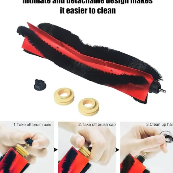 Effektiv kantrengöring: 3 sidoborstar ingår för att säkerställa noggrann rengöring längs väggar, hörn och kanter. Dessa borstar hjälper till att sopa in skräp till huvudborsten för effektiv rengöring.