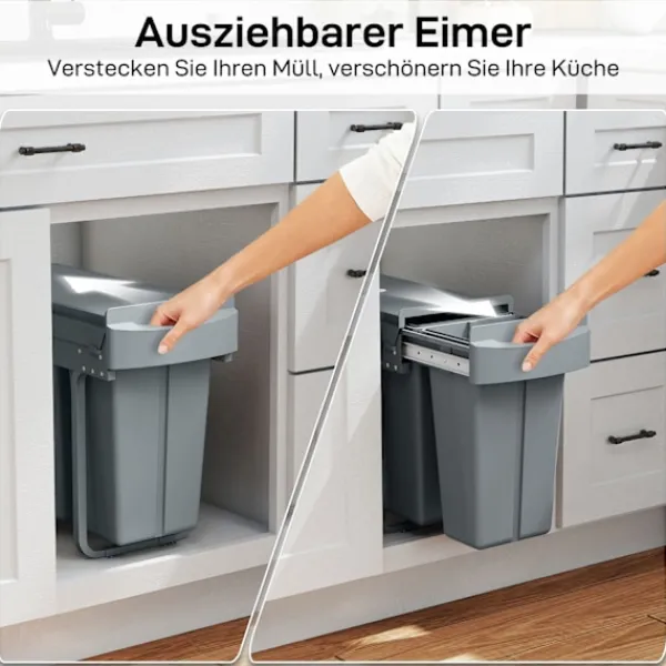 - Håll ditt kök snyggt med en dold design som döljer avfall.