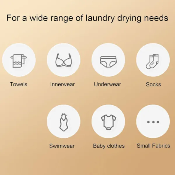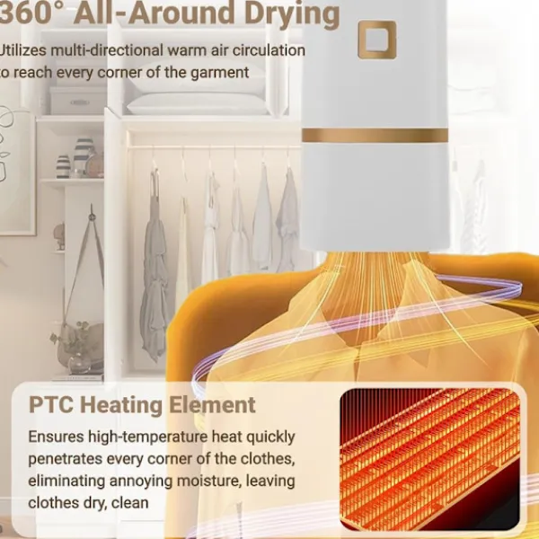 Cirkulerande varm luft torkar kläder snabbt. Multidirektionell värme når alla hörn utan skador.