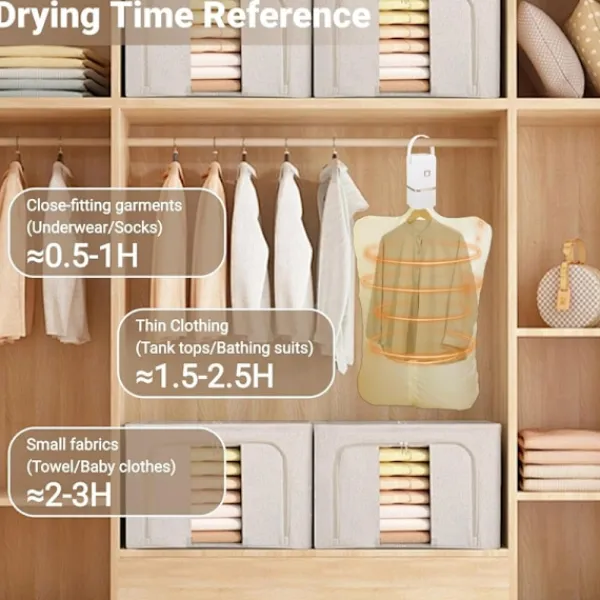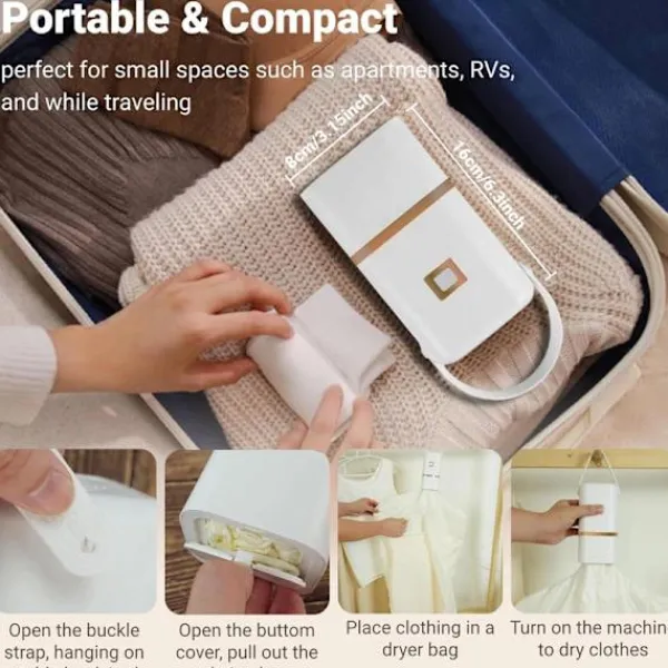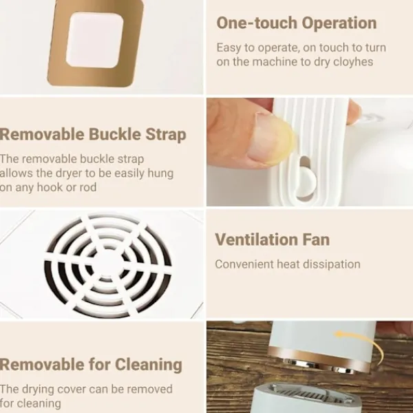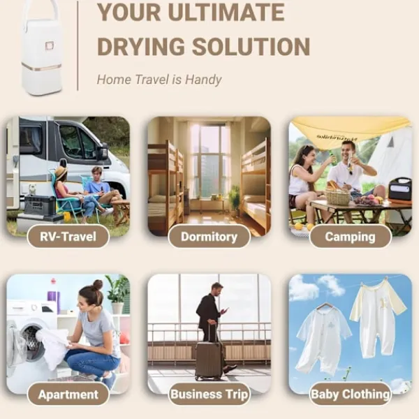 Idealisk för resor, camping, hem eller dåligt väder. Torkar kläder skonsamt och snabbt.