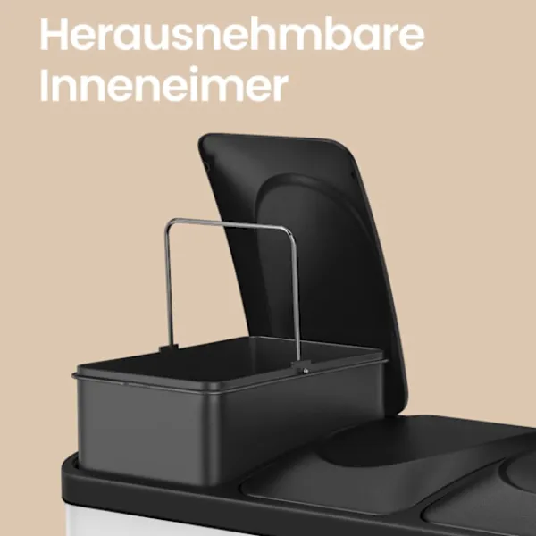 Rotz Kitchen Garbage Separation System erbjuder en snygg och funktionell lösning för avfallshantering. Med tre fack gör det återvinning enkelt medan dess robusta stålkonstruktion säkerställer hållbarhet. Fotpedalfunktionen möjliggör handsfree-drift och håller ditt kök rent och hygieniskt. Idealisk för stadsbor, förenklar denna bin avfallshantering och hjälper till att hålla din miljö städad.