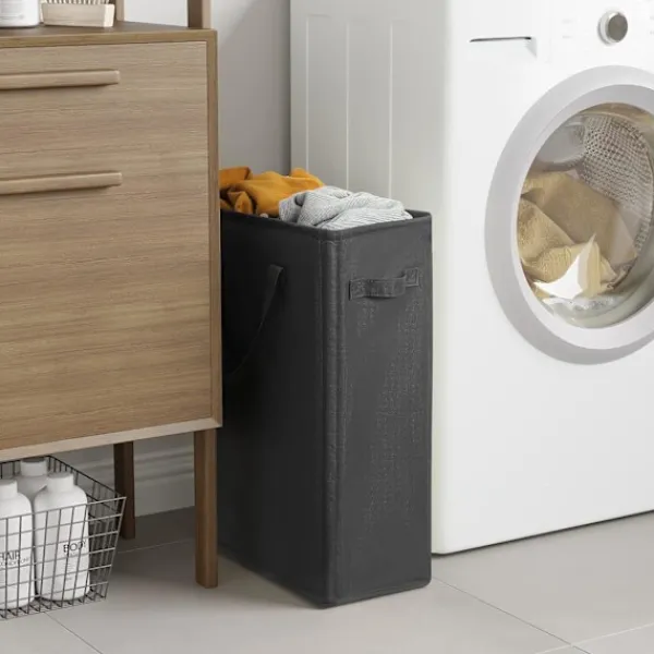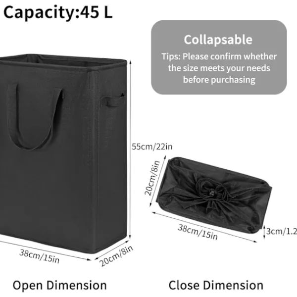 SLIM FORM: Storleken är 38 x 20 x 53 cm (exklusive handtag). Våra tvättkorgar har en smal form så vi föreslår att du lägger lätta kläder i den. Lämplig för små utrymmen mellan tvättmaskiner och torktumlare