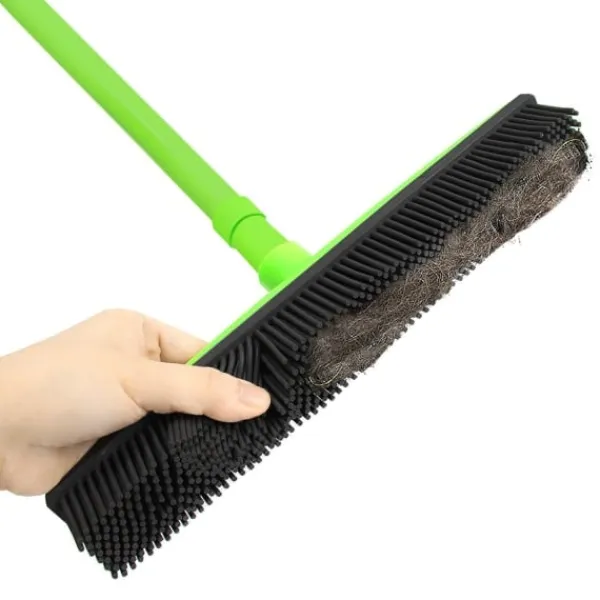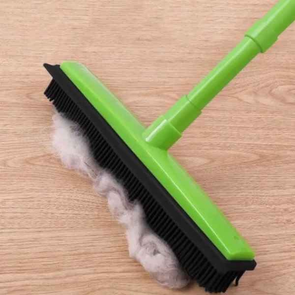 Denna unika sopborste har ett teleskopskaft som gör att den passar alla familjemedlemmar. Själva borsten är tillverkad i gummi för att den effektivt ska kunna fungera mot alla typer av smuts. Den fångar effektivt upp exempelvis hår, damm och annan smuts från golv och mattor. Materialet gör även att den går utmärkt att använda utomhus eller i ditt garage. På ena sidan av borsten sitter en skärm som du kan använda för att samla upp vätska. Borsten rengörs enkelt med vatten.