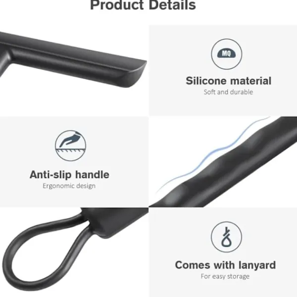 Bekvämt handtag: Svart duschskrapa Den övergripande T-formade designen och den konkav-konvexa designen på handtaget är mer halkfria, lättare och bekvämare att hålla i; Rostfritt stålkärna erbjuder den stabilitet som krävs för maximal rengöringskraft med minimal ansträngning samtidigt som handtrötthet minimeras