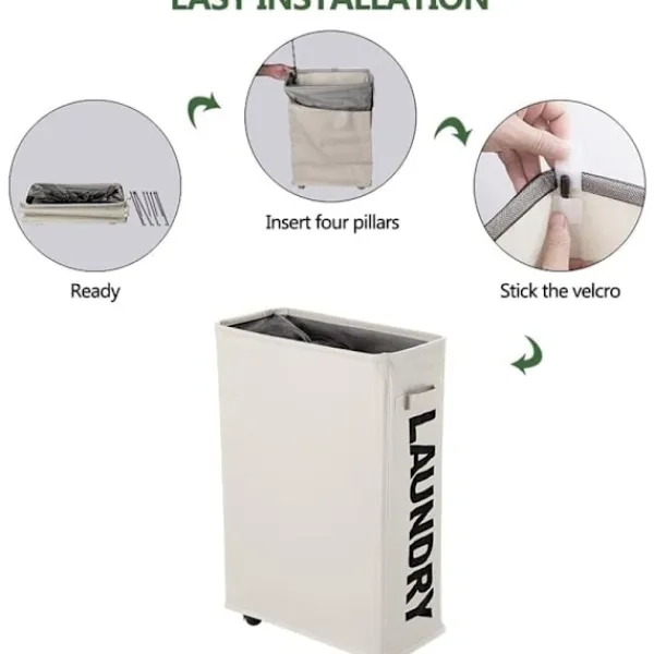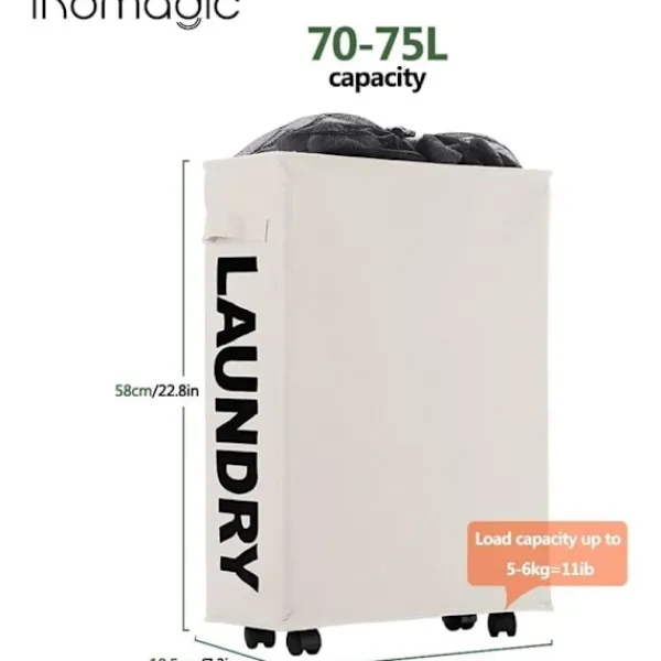 kan innehålla upp till 5 till 6 kg kläder eller andra föremål. Den tunna tvättkorgen passar perfekt i hörnet av ditt hem. Perfekt för förvaring av kläder, skor, täcken och underkläder.