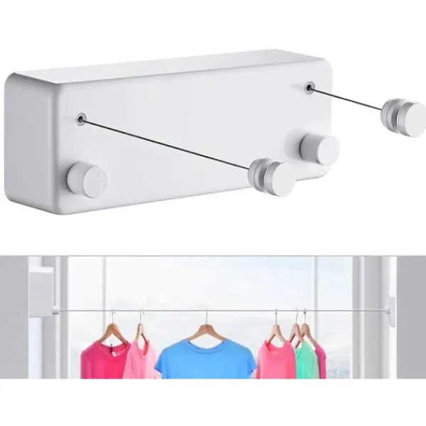 Utrymme – Praktisk, tvättlinan rullas ut enkelt för att torka din tvätt och rullas ihop lika enkelt när du inte behöver den. En riktig platsbesparare i huset. Tvättlinor lindas upp långsamt för att säkerställa användarsäkerheten.