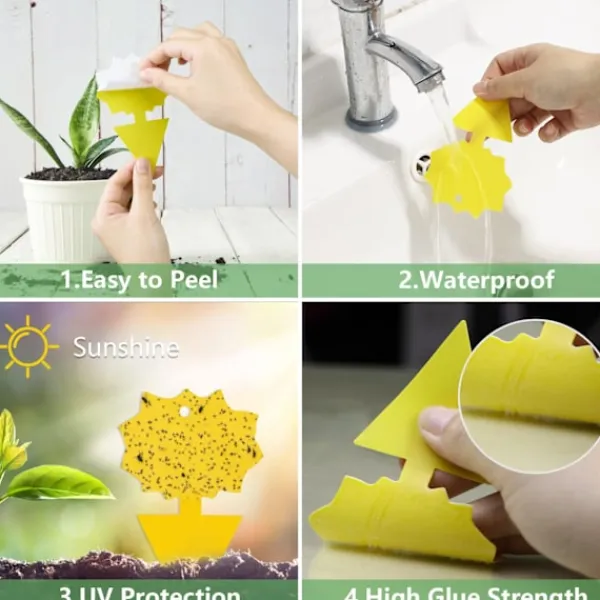 Insektfälla 48 st, Flugfälla Klibbig Dubbelsidig Gul Flugfälla Vattentät Anti Nematoder Myggor Bladlöss Trips Vita Flyg, Perfekt Mot Skadedjur Balkong Inomhus Trädgård