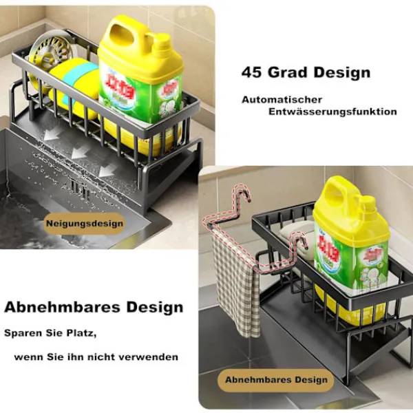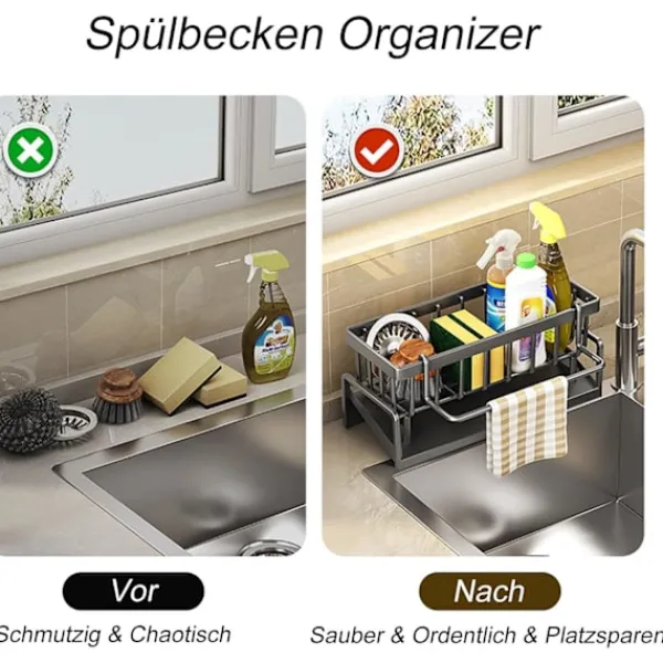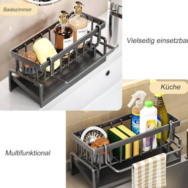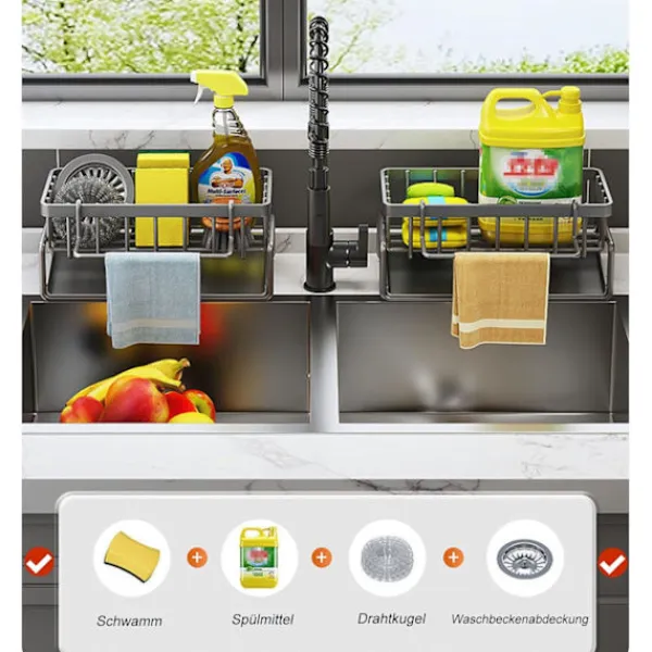 【Mångsidig och multifunktionell】 Även om vår multifunktionella diskhoorganisatör främst används i köket och kan användas som svamphållare, trashållare, diskställ etc., kan den också användas i sovrum, badrum och på andra platser som hjälp för att förvara rengöringsprodukter, kosmetika, verktyg etc.