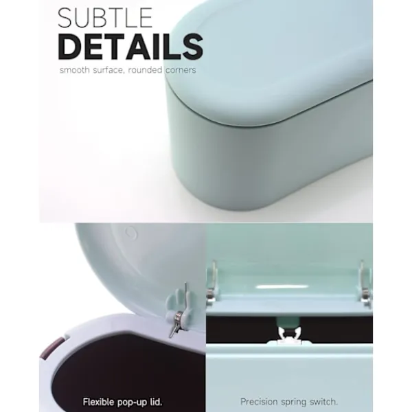 【Bords-soptunna】 Den lilla soptunnan med trycklock är lämplig för förvaring av skräp som papper, mat, smink eller annat litet avfall, kan effektivt isolera lukten av sopor, bananflugor och hålla din bänkskiva snygg. Ett klick för att stänga, rent och luktfritt.
