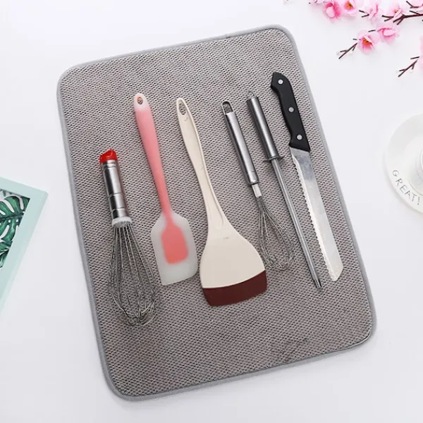 2.TJOCKAST, SNYGGA MATTA | INNOVATIV BIKAKAVÄV: Håll disken fläckfri även när du diskar ett handfat fullt med disk. Vår suveränt snygga torkmatta är bland de tjockaste på marknaden idag, och dess innovativa bikakestruktur i mikrofiber förbättrar absorptionen och förkortar torktiden.