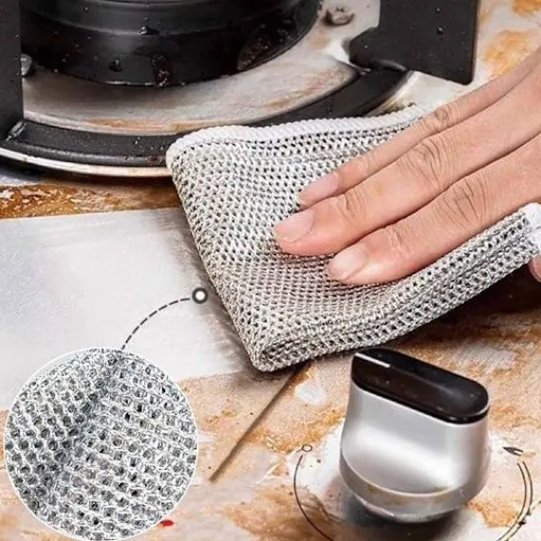 Våra multifunktionella metalltrådsdiskdukar kan ta bort envis smuts och är gjorda av högkvalitativ metalltråd. Dessa repfria skurdukar är perfekta för att hantera hårda, smutsiga och stökiga föremål utan att orsaka skador.