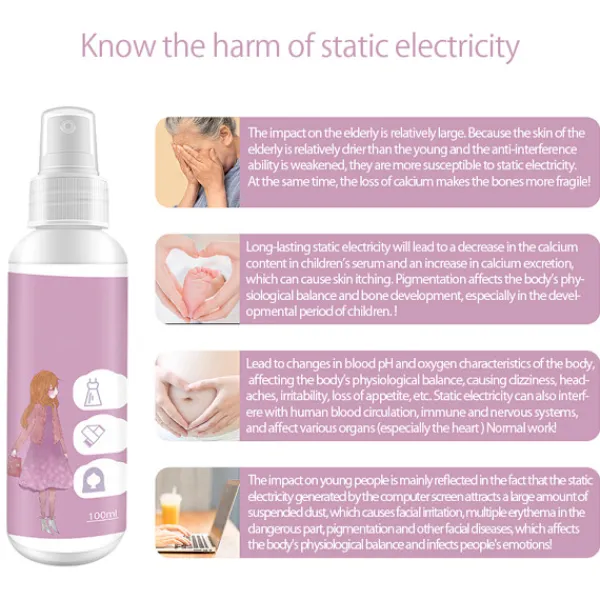 4. [Lätt att använda] Spraya den där du behöver ta bort eller förhindra statisk elektricitet och vänta på att den torkar. Operationen är väldigt enkel och sparar tid och ansträngning.