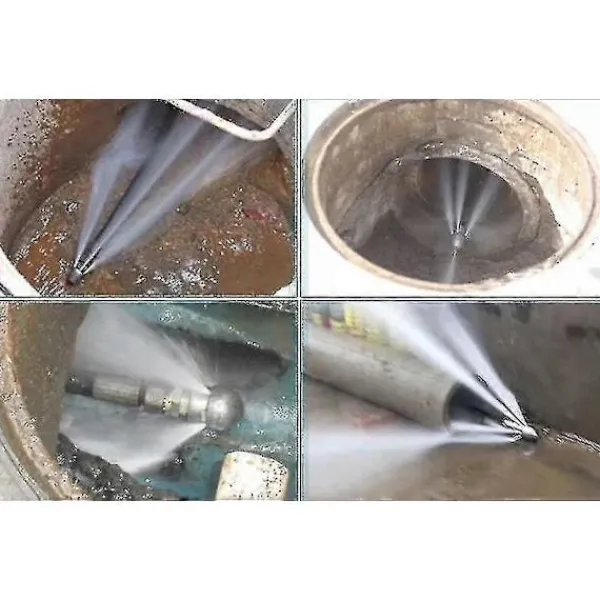 Munstyckena är designade för att rensa avloppsledningar med högtryckstvättar. Slang för 1/4 hane, lämplig för användning med hushålls- och professionella högtryckstvättar. För rengöring av föroreningar i avloppsrör som inte kan avlägsnas med kemikalier eller traditionella metoder. Avloppsmunstycken används också för isbrytning. Munstycket som visas har ett roterande huvud med 3 hål riktade bakåt, vilket gör det lättare att dra slangen. Virveln maximerar kraften och effektiviteten vid rengöring av rören, särskilt innerväggen.