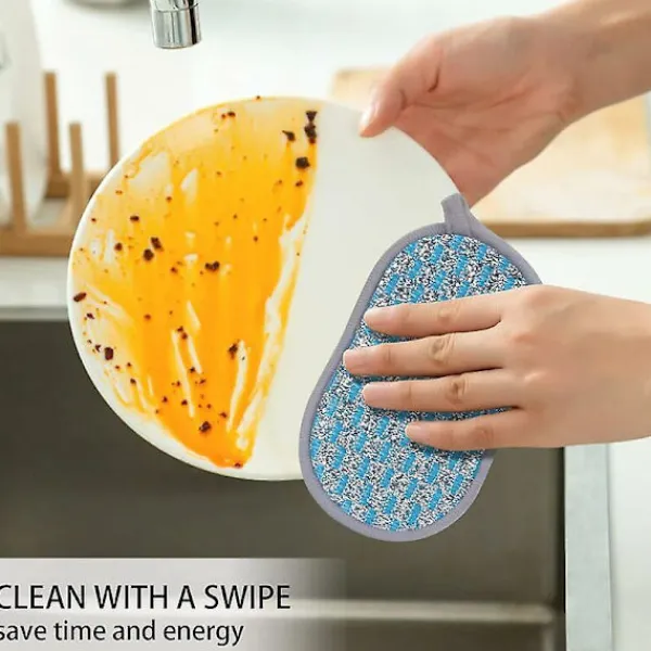 2 olika sidor – mikrofibersida och frostad sida En sida är mikrofiber för rengöring och torkning, den andra är frostad för att ta bort fasta matrester och envis smuts. Perfekt för non-stick-köksartiklar, repfri.