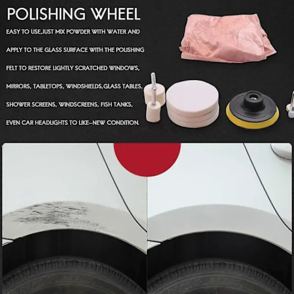 1.Ceriumoxid är det bästa polermedlet för glasrepor på grund av den och reaktionen.2.Lätt att använda, blanda bara med vatten och applicera på glasytan med polerfilten för att lätt repa fönster, , bordsskivor, vindrutor, glas, duschväggar, vindrutor, akvarier, till och med bilstrålkastare till nyskick.ProduktbeskrivningNamn: 8st PoleringskitPad Max RPM:12000Föreslagna instruktioner för användning av Ceriumoxid:(1)Nödvändiga tillbehör:1.Ceriumoxid2.Vatten (Vissa rekommenderar destillerat vatten)3.Poleringshjul4.Borrmaskin5.Små plastbaljor (Pint eller quart storlek)6.Sprayfärg: vitMaterial: filtPaketets innehåll:1 x 120g ceriumoxid 1 x 2cm filtpoleringshjul1 x 3cm filtpoleringshjul1 x 3inch filtpoleringshjul pad1 x 8mm borr adapter3 x 3inch diameter poleringspadEndast ovanstående paketinnehåll, andra produkter ingår inte.Obs: Ljus och olika skärmar kan orsaka att färgen på objektet på bilden skiljer sig lite från den verkliga. Det tillåtna mätfelet är +/- 1-3cm.