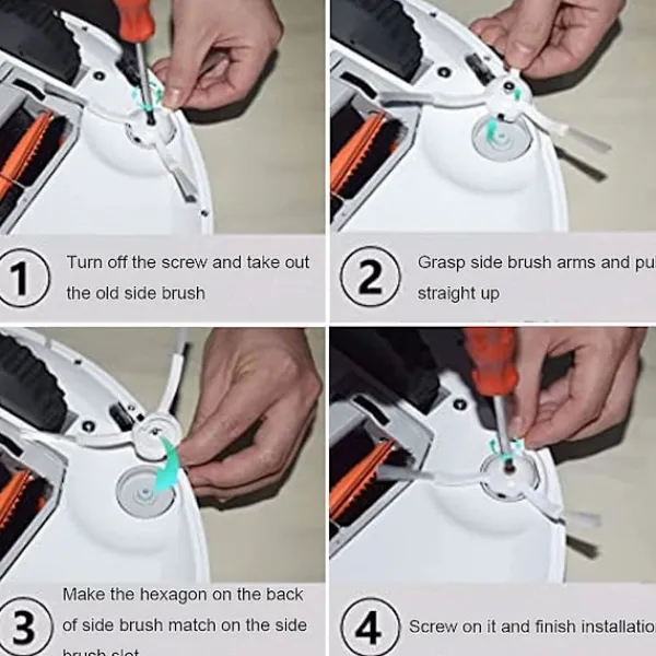 Lätt att installera: Varje sido borste -installeras med en skruv leverans, ingen oro för att missa skruvarna längre. Den är lätt att byta ut och installera på dina robotdammsugare.