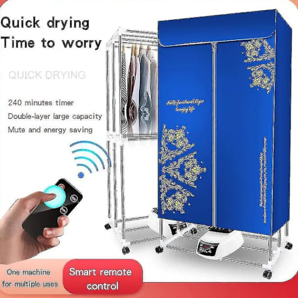 Den torkar dina kläder enkelt utan att du behöver oroa dig för obehagliga lukter från högar av blöta kläder. Om du har en behöver du inte gå till tvättstugan för att torka dina kläder, vilket sparar tid och renlighet. Perfekt för familjer, lägenheter, resor.