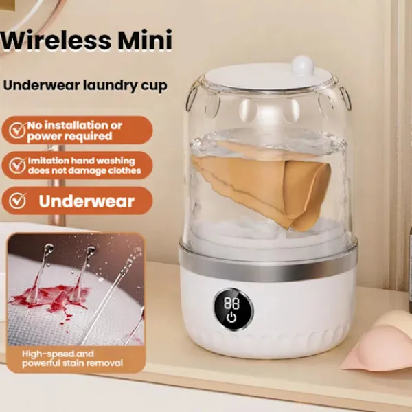 Mångsidig Tygvård: Vår bärbara tvättmaskin är inte bara lämplig för underkläder, utan kan också rengöra ömtåliga tyger som siden, ull och spets. Flera tvättlägen ger expertvård och bevarar kvaliteten och livslängden på dina kläder.