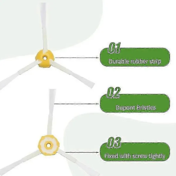 Unikt designade borstar med gummibanor för att anpassa sig till olika golvytor som tar bort allt från smått damm till stora avlagringar.