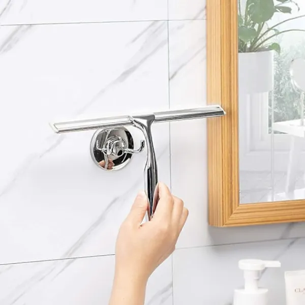 Stabil installation: Duschskrapan levereras med en stark sugkrok i rostfritt stål, inga verktyg eller borrning krävs. Sugkroken är lätt att installera, ta bort och flytta när som helst. Duschskrapan kan förvaras på glas eller släta plattor för enkel åtkomst.