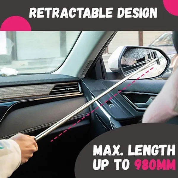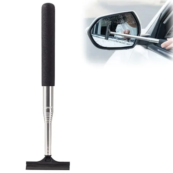 1.【Infällbar design】: Infällbar design för enkel rengöring av vänster och höger backspegel. Maximal längd är upp till 980 mm/38,6 tum, även när du sitter på förarplatsen kan du enkelt skrapa bort vattnet från backspegeln på andra sidan. 2、2.【Enkel och praktisk】: Torka snabbt bort vatten, enkel och bekväm användning. Lagerborsthuvud för snabbare och mer grundlig vattenborttagning än handduk. 3、3.【Lagerborsthuvud】: När det regnar eller efter att regnet har upphört är den yttre backspegeln täckt med vatten, vilket gör det svårt att se vägförhållandena bakom vid start och backning eller körning. 4、4. 【Mjukt svamphandtag】: Handtaget är lindat med mjuk svamp, det är enkelt och bekvämt att använda. 5、5.【Lätt att rengöra】: Torka helt enkelt av torkaren med en pappershandduk efter att ha skrapat bort vattnet från backspegeln. Den är liten och bärbar, lätt att bära och förvara var som helst i din bil.