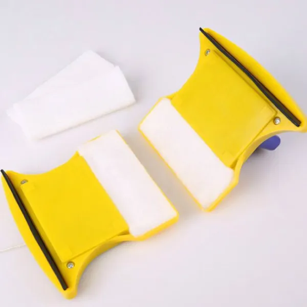 Denna magnetiska fönsterputs består av två identiska delar. Den är utrustad med svampar för tvätt och två borstar (som vindrutetorkare). Du kan därför rengöra fönstren utan ansträngning och utan fara. Placera bara en del på vardera sidan av glaset så håller magneterna dem fast genom glaset. Svamparna är avtagbara och tvättbara. Den är utrustad med ett rep och en ring för att fixera den yttre delen och förhindra att den faller av misstag och får borsten att rusa. Tekniska egenskaper: Rengör båda sidor av glaset samtidigt. Handtag i plast. Tvätta och torka. Utrustad med starka magneter. Kan användas separat för snabb rengöring av andra ytor som kakel eller speglar. Mått på varje del: 11 x 10 x 5 cm ungefär.
