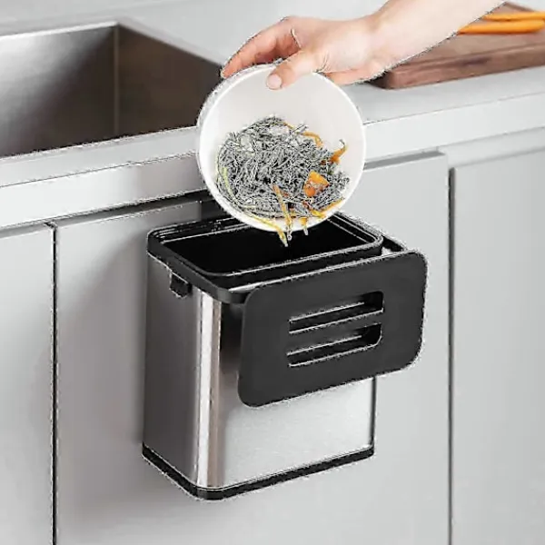 Ren: den rostfria behållaren (hängande) för kompost ger dig en praktisk och ren hjälp vid matlagning. Denna passar dörrar eller lådor upp till 2,7 cm breda. Med praktiskt lock och handtag.