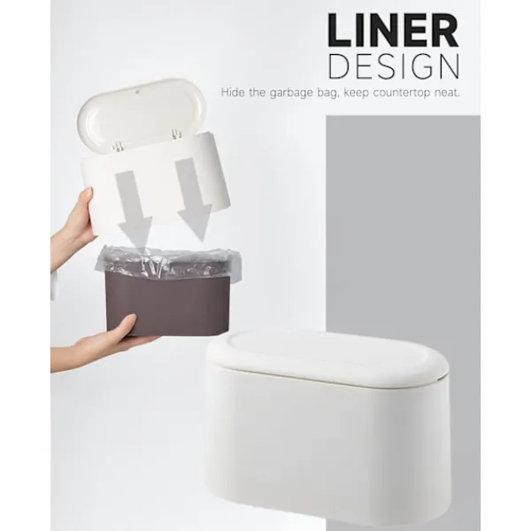 【Lätt att Använda & Rengöra】 Pop-up designlocket är enkelt och bekvämt. Tryck bara på knappen för att öppna eller stänga locket. Linerdesignen kan placera och dölja soppåsen, vilket gör det enkelt att byta sopor.