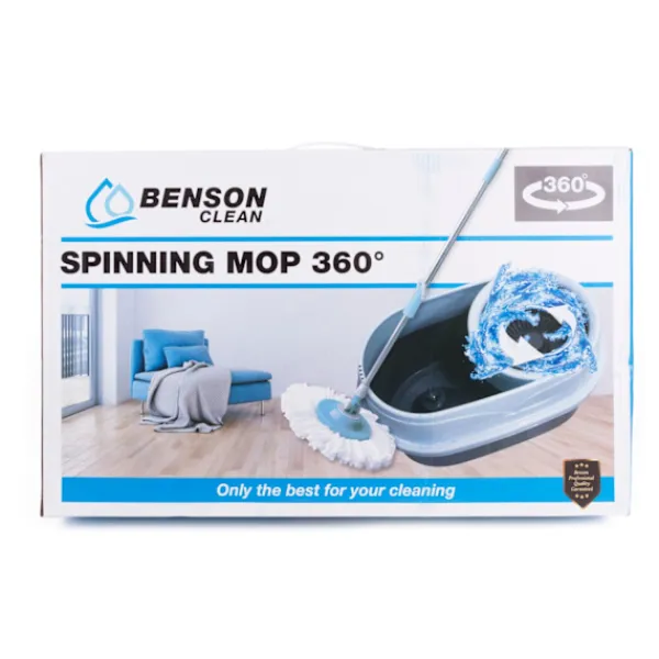 Förpackningen innehåller: hink, handtag och 2 mikrofibermoppar.