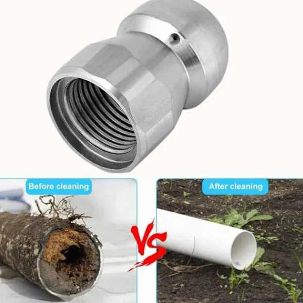 Rengöringsmunstycke Högtryck Vatten och Avloppsstrålar Rostfritt Stål Tvättillbehör för Rör och Avlopp 3/8 tum