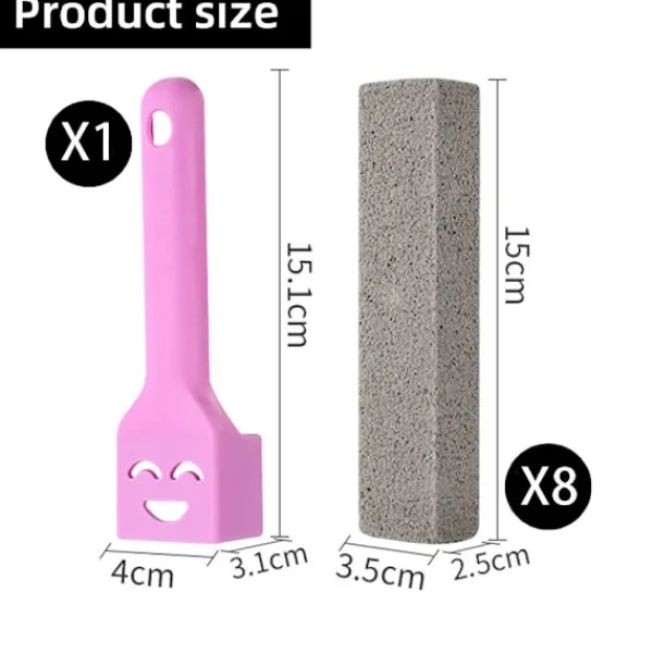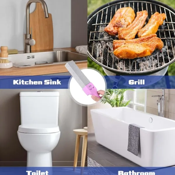 Lämplig för: Pimpstenen med handtag kan användas för att ta bort kalk, kalkavlagringar och avlagringar från toaletter, handfat, badrumsplattor och andra keramiska ytor. Den kan också användas för att ta bort rost och fett från grillar och ugnar.