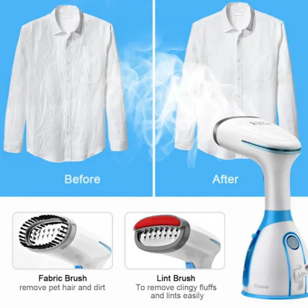 3、Fräscha Upp Dina Kläder Omedelbart: Kraftfull 1200W ångare med stor 280ml vattentank ångar kontinuerligt i 10 minuter och förvärms på bara 18 sekunder eller mindre.