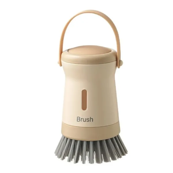 Tryckfunktion för enkel rengöring: Utrustad med ett tryckhandtag gör denna diskborste att du kan applicera ett jämnt tryck för effektivare rengöring, vilket effektivt tar bort tuffa fläckar och avlagringar från dina kokkärl och apparater.