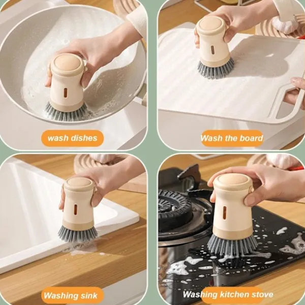 Mångsidig för flera ytor: Denna rengöringsborste är idealisk för att skrubba en mängd olika ytor, inklusive grytor, kastruller, spisar, spiskåpor, diskhoar och andra köksredskap, vilket gör den till ett verktyg för alla köksrengöringsrutiner.