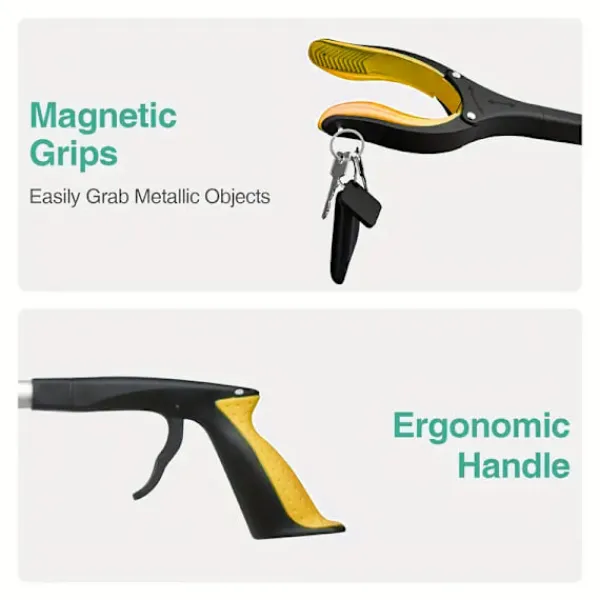 【UPPGRADERADE ANTI-SLIPPKÄFTAR】360 graders roterande plockhuvud med magnetiska spetsar. Plockverktyget med ett 360° roterande huvud kan nå vilken riktning som helst, lätt att greppa vinglas, bok, fjärrkontroll, skräp eller löv etc. Magnetiska spetsar på toppen kan plocka upp små metalldelar som nycklar, mynt, spikar, stift. Använd detta plockverktyg för att göra ditt arbete enklare.
