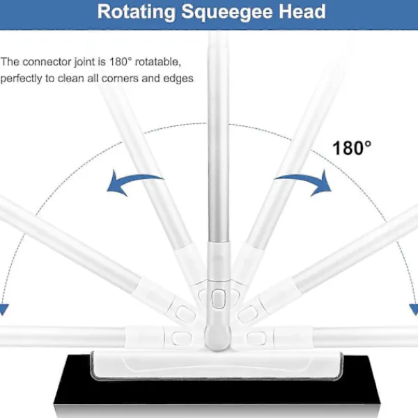 Roterande skrapshuvud: Anslutningsleden är 180° roterbar, perfekt för att rengöra alla hörn och kanter, du kan enkelt rengöra vissa fördjupningar och hörn som är lätta att ignorera, rengöra golvytor utan att repa, snabbt ta bort stora ytor med vatten i våtrum.
