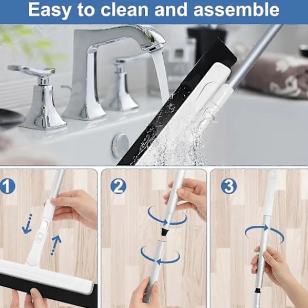 Lätt att montera och rengöra: Golvskrapan är enkel att montera, du behöver bara montera anslutningsstången och skrapshuvudet och sedan montera handtaget enligt önskad storlek. Lätt att förvara och rengöra, skölj skrapan med rent vatten för att hålla den ren.