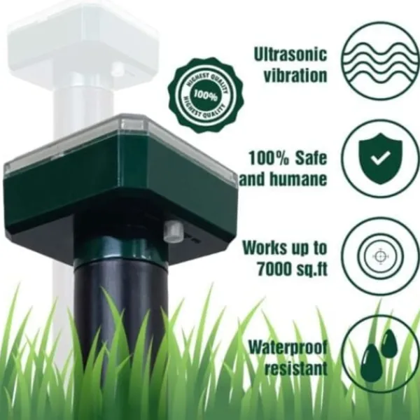 Mänsklig säkerhet: Mullvadsfördelaren använder lågfrekventa akustiska impulser för att fördriva gnagare utan att använda giftiga ämnen. Eftersom ljudvågorna som sänds ut av denna metod endast är hörbara för farliga djur, är varken människor eller husdjur i fara. På så sätt kan du få ett effektivt skydd mot fästingar utan att oroa dig för negativa effekter på din eller din familjs hälsa._TS