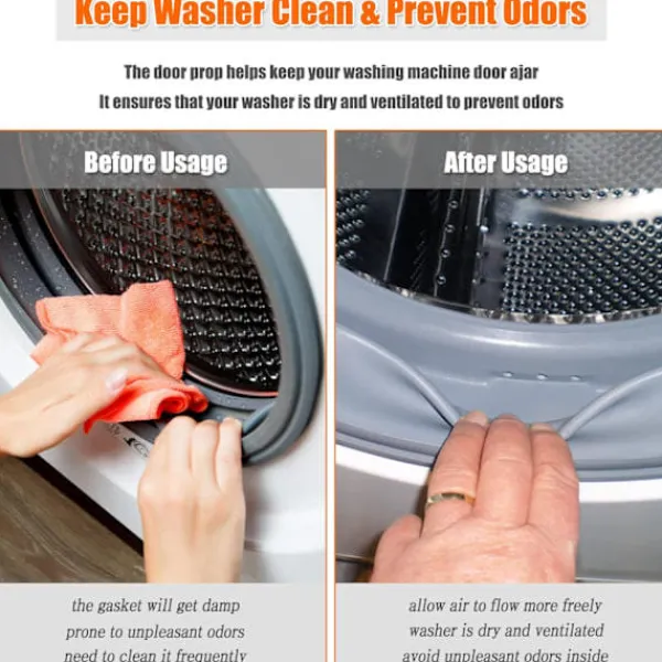LÄTT ATT ANVÄNDA – Fäst den magnetiska basen på tvättmaskinens inre dörrkarm eller någon annan järnyta, forma sedan slangen för att hålla tvättmaskinsdörren. Inte bara för tvättmaskiner med frontmatning, utan även för torktumlare! Den är för tvättmaskiner med frontmatning av järn, inte för tvättmaskiner av rostfritt stål eller plast eftersom de inte är magnetiska [CO]