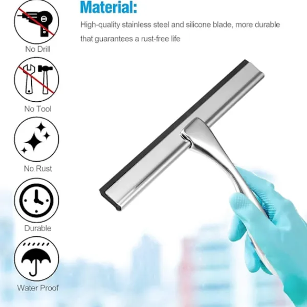 【Enkel att förvara】Rakeln för duschglasdörrar levereras med klisterkrokar. Användarna kan enkelt hänga duschraklen på väggen och glaset, vilket sparar utrymme för användarna.