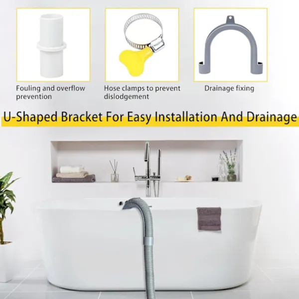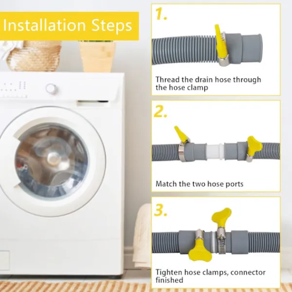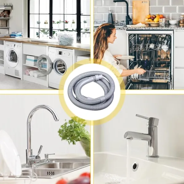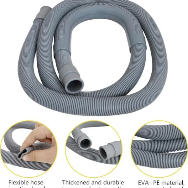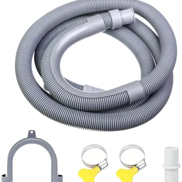 Förlängningskit för avloppsslang: Avloppsslangkitet innehåller 1,5 m slang, 1 förlängningsadapter, 1 U-format fäste, 2 manuella slangklämmor. Om avloppsslangen på din tvättmaskin och avfuktare inte är tillräckligt lång eller om du behöver byta ut avloppsslangen, kan du välja vår avloppsslang, som passar de flesta frontmatade tvättmaskiner.