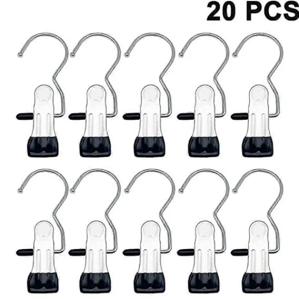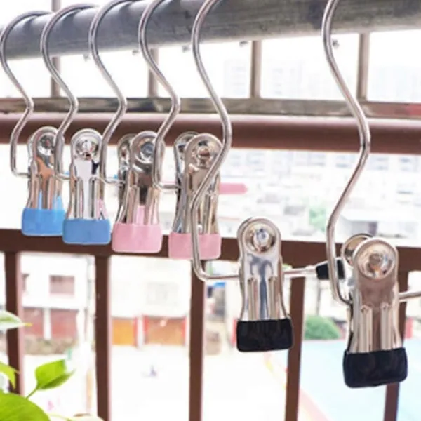 1. Robust material: Stabila klämmor i rostfritt stål säkerställer kvalitet och hållbarhet, är mer robusta än plastkrokar och har en liten och lätt design, kan användas på en mängd olika sätt. Fjädern är lätt att öppna upphängningen. Med dessa klämmor kan du enkelt hänga kläder, skor eller stövlar för förvaring eller torkning.
