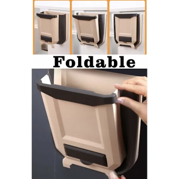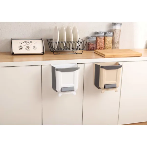 2,4 Gallons Hängande Köksavfallskorg, 10L Plast Vikbar Liten Sopbehållare för Skåp Bil Sovrum Badrum Kök Kontor, Kaffe