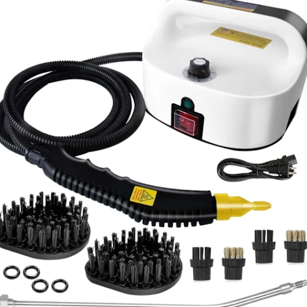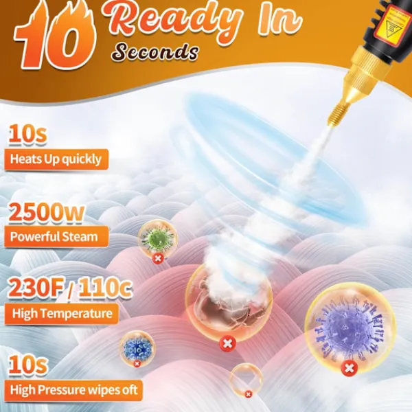 🎅🎅【2500W Hög temperatur & tryckångrengörare】 Ångrengörarens arbetseffekt är 2500W, den värms upp snabbt inom 15 sekunder och når 221°F/105°C, vilket är superkraftfullt och enkelt och grundligt kan lossa och lösa upp smuts, skära