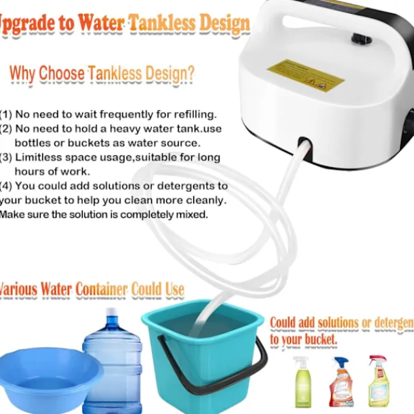 🎅🎅【Uppgradera till vattenlös design】 Du behöver inte fylla på vatten ofta, börja rengöra när som helst, var som helst. Den bärbara ångrengöraren med 106 cm klar slang kan anslutas direkt till en vattenbehållare för drift och kontinuerlig uppvärmning.