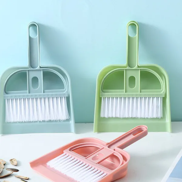 Rengöringskit för minisopor och kvast med humaniserad design, liten storlek, lätt att förvara, lätt att bära, sopskivan och kvasten har en håldesign, som enkelt kan hängas på väggkroken, dörren eller köket