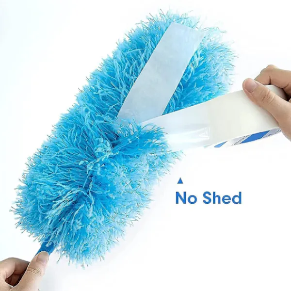 Tvättbar och återanvändbar: Skaka försiktigt dammvippan efter varje användning för att avlägsna damm och hår från dammvippans huvud. Om den är mycket smutsig efter användning, rengör fjäderdammsvippan med varmt vatten och neutralt rengöringsmedel och häng den på tork för nästa användning.